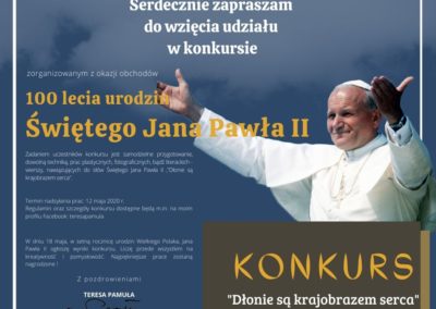Konkurs „Dłonie są krajobrazem serca” utworzone przez admin | Kwi 30, 2020 | Aktualności Regulamin konkursu plastycznego (245 pobrań) Oświadczenie (82 pobrania) KONKURS grafika 1