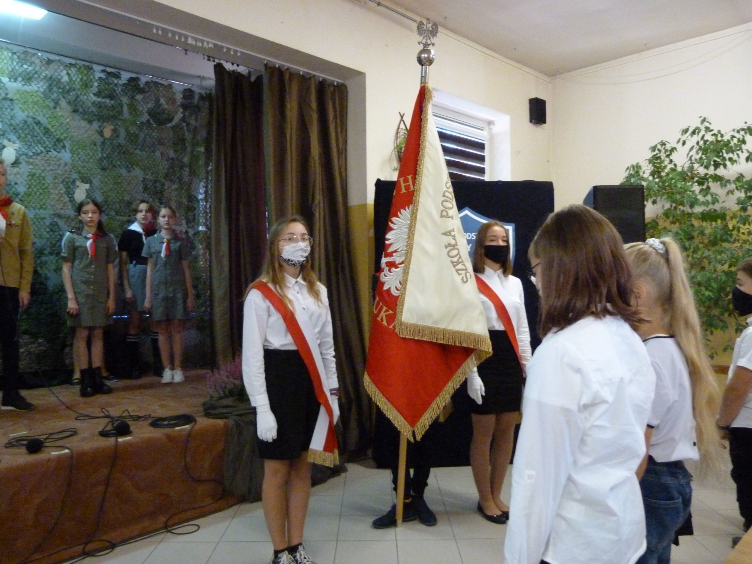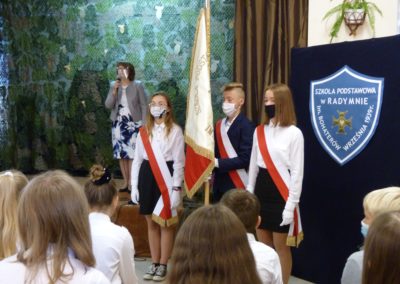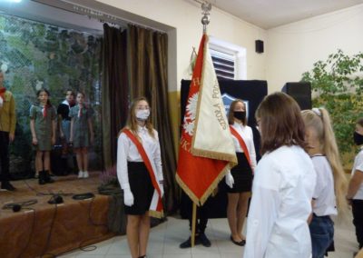 W Poczcie Sztandarowym służyli uczniowie klas ósmych: Aleksandra Kosztyła, Natalia Segiń, Oliwia Wiśniowska, Sandra Sas, Miłosz Szwedzki, Karol Zieliński.