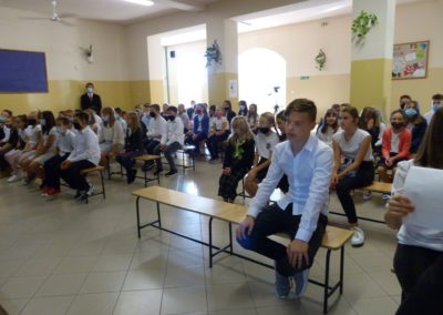kl. VII: Emilka Biesiadecka, Weronika Brzyska, Julia Indra, Patrycja Krysiak, Karolina Muszak, Julia Nosal, Malwina Piętka, Milena Rabczak, Maciej Słabak , Maja Sudoł, Michał Szramik, Sabina Tomaszewska, Weronika Tworzydło, Kl. VIII: Gracjan Kuta – został przygotowany pod kierunkiem p. Elżbiety Kawulki i p. Anny Borówki.