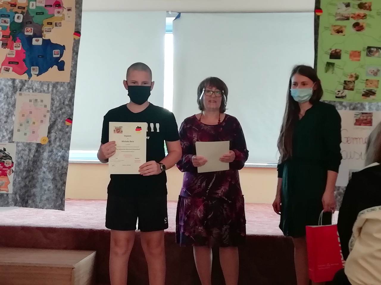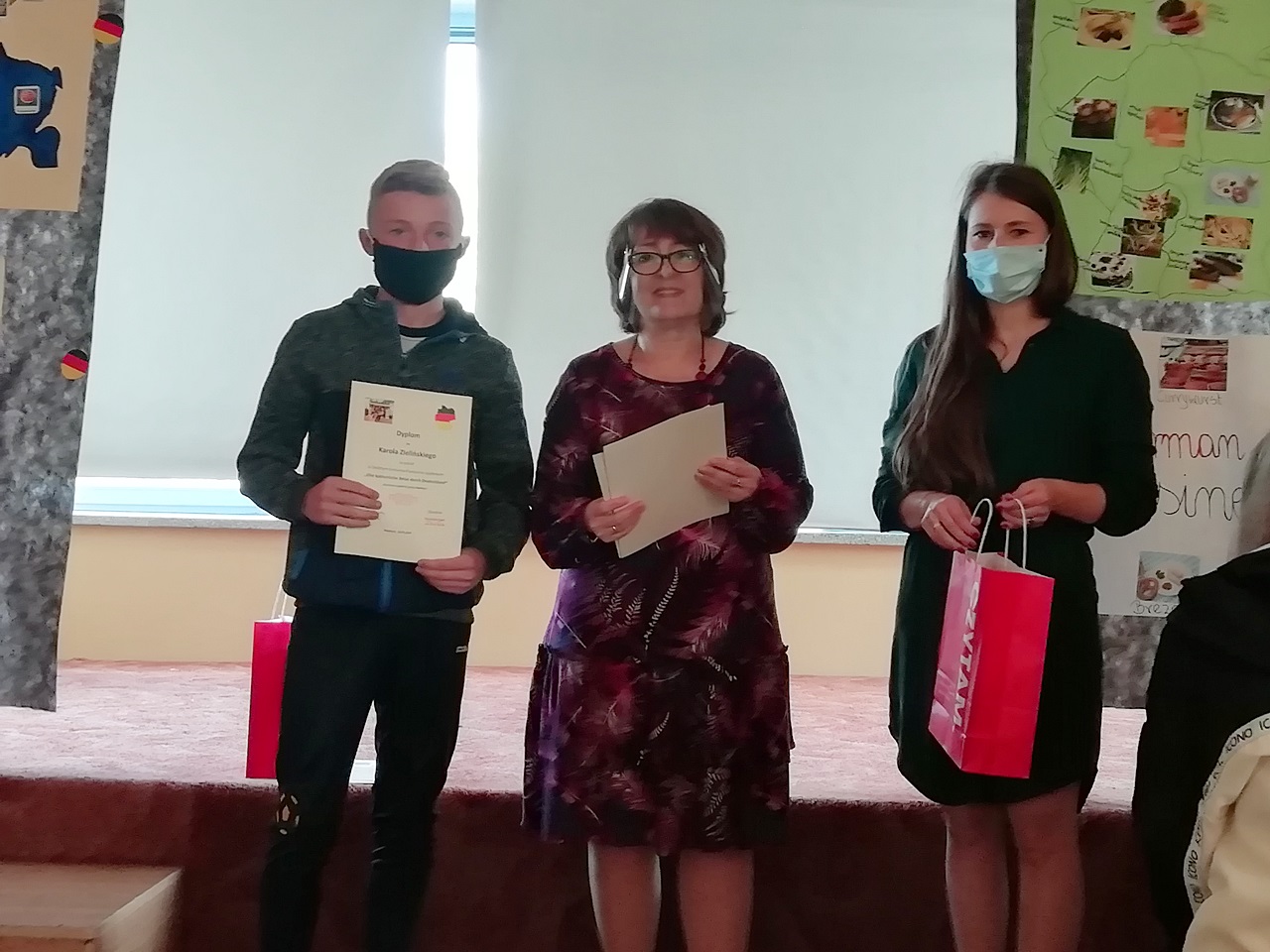 Przy okazji tego wydarzenia został rozstrzygnięty Szkolny Konkurs Plastyczno-Językowy „Eine kulinarische Reise durch Deutschland” Kulinarna podróż przez Niemcy. Uczniowie przygotowywali plakaty przedstawiające tradycyjne potrawy kuchni niemieckiej w poszczególnych regionach. W konkursie wzięło udział 15 uczniów. Wszystkie prace były wykonane bardzo starannie i pomysłowo. Jury miało bardzo trudną decyzję do podjęcia. I miejsce zdobyła Aleksandra Hajduk kl. VIIIC, II miejsca ex aequo Aleksandra Kosztyła kl VIIIC oraz Marcel Kania kl. VIIIA, który wykonał pracę zawierającą kody QR, w których zaszyfrował informacje o potrawach oraz III miejsce Julia Wasylik kl. VIIIC. Wszyscy uczestnicy otrzymali dyplomy oraz słodkie upominki, a laureaci nagrody rzeczowe.